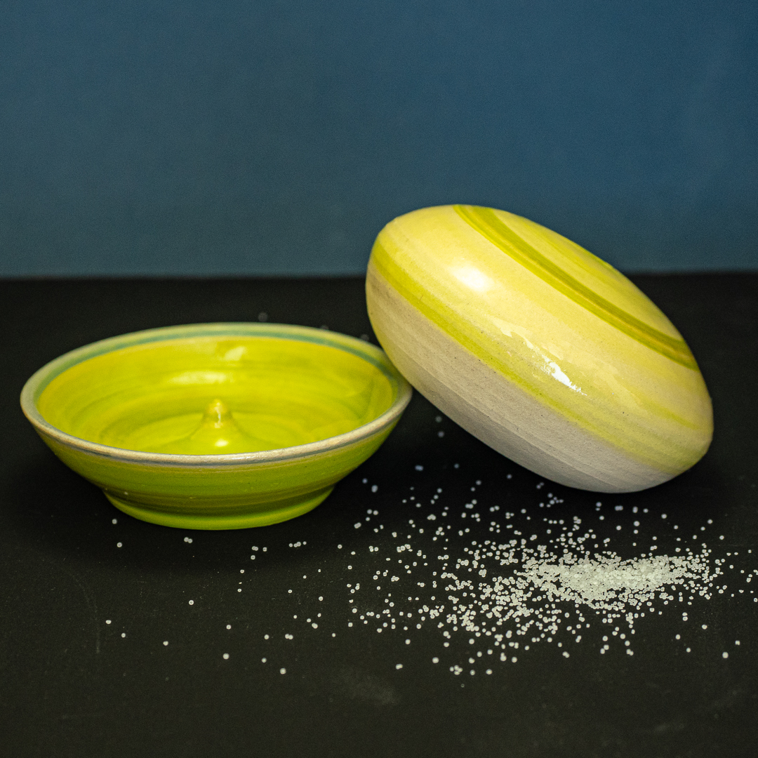 Ob zur Aufbewahrung von Oliven, Gewürzen, Schmuck oder anderen kleinen Dingen – die Feendose ist vielseitig einsetzbar. Jede Feendose ist handgefertigt und unterscheidet sich in Form und Farbe.