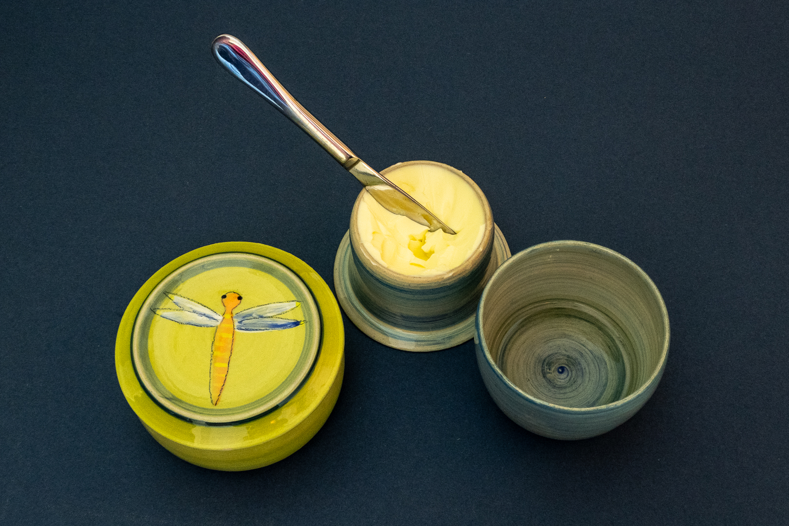 Die französische Butterdose, auch bekannt als „beurrier“, ist eine klassische Art streichzarte Butter außerhalb des Kühlschrankes frisch zu halten.